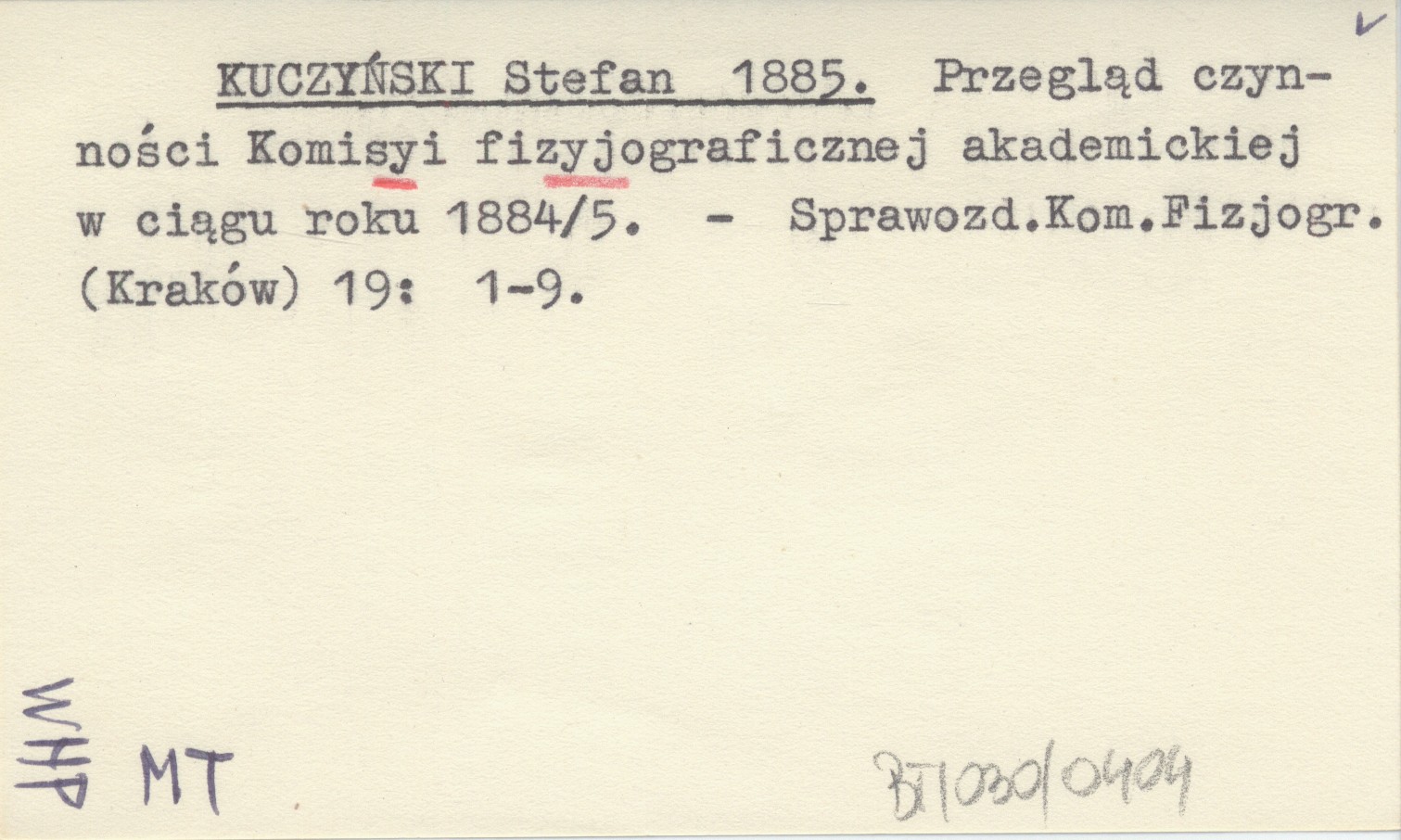 KUCZYŃSKI Stefan 1885 Przegląd czynności Komisyi fizyograficznej akademickiej w ciągu roku 1884/5.