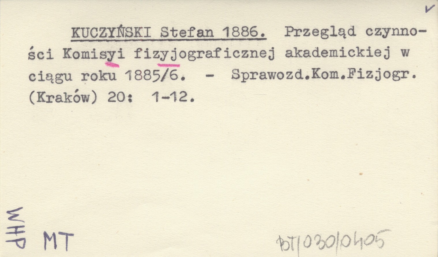 KUCZYŃSKI Stefan 1886 Przegląd czynności Komisyi fizyograficznej akademickiej w ciągu roku 1885/6.
