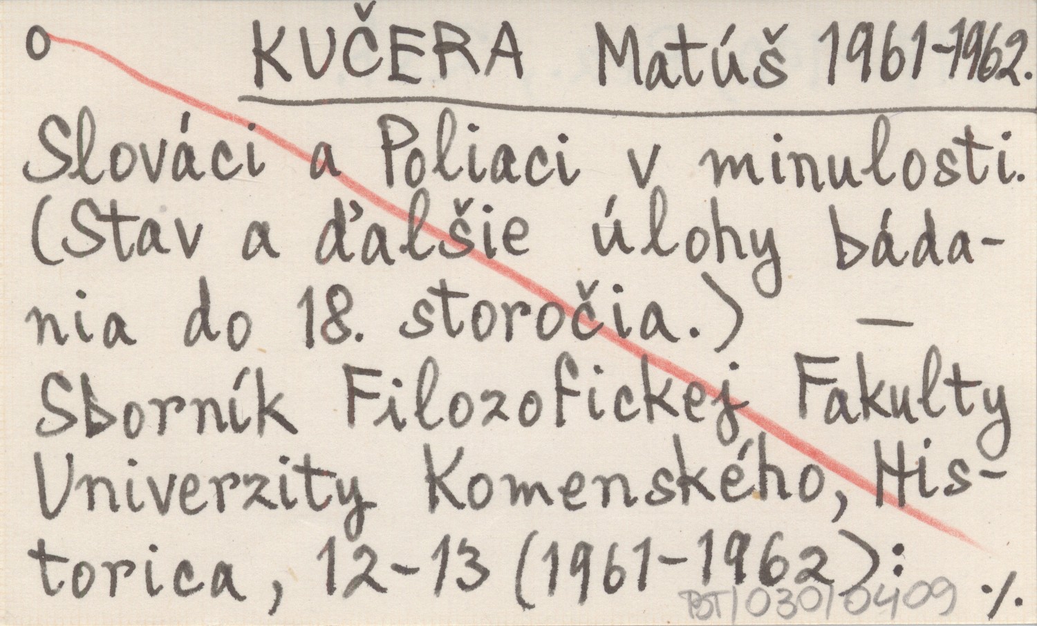 KUČERA Matúš 1961-1962 Slováci a Poliaci v minulosti. (Stav a ďalšie úlohy bádania do 18. storočia).