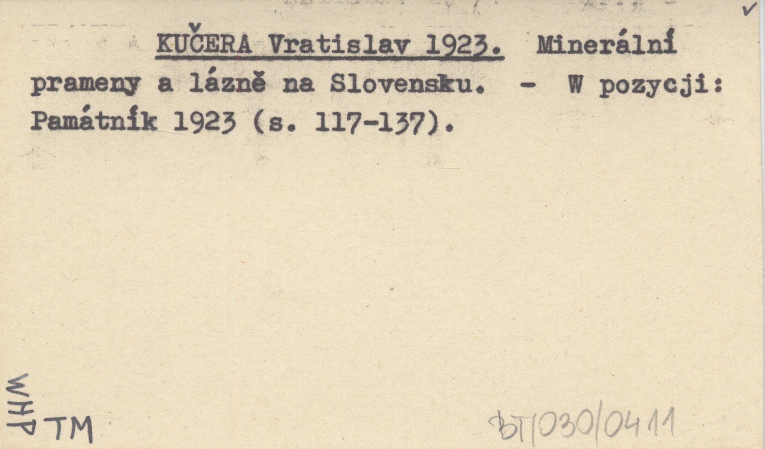 KUČERA Vratislav 1923 Minerálni prameny a lázně na Slovensku.