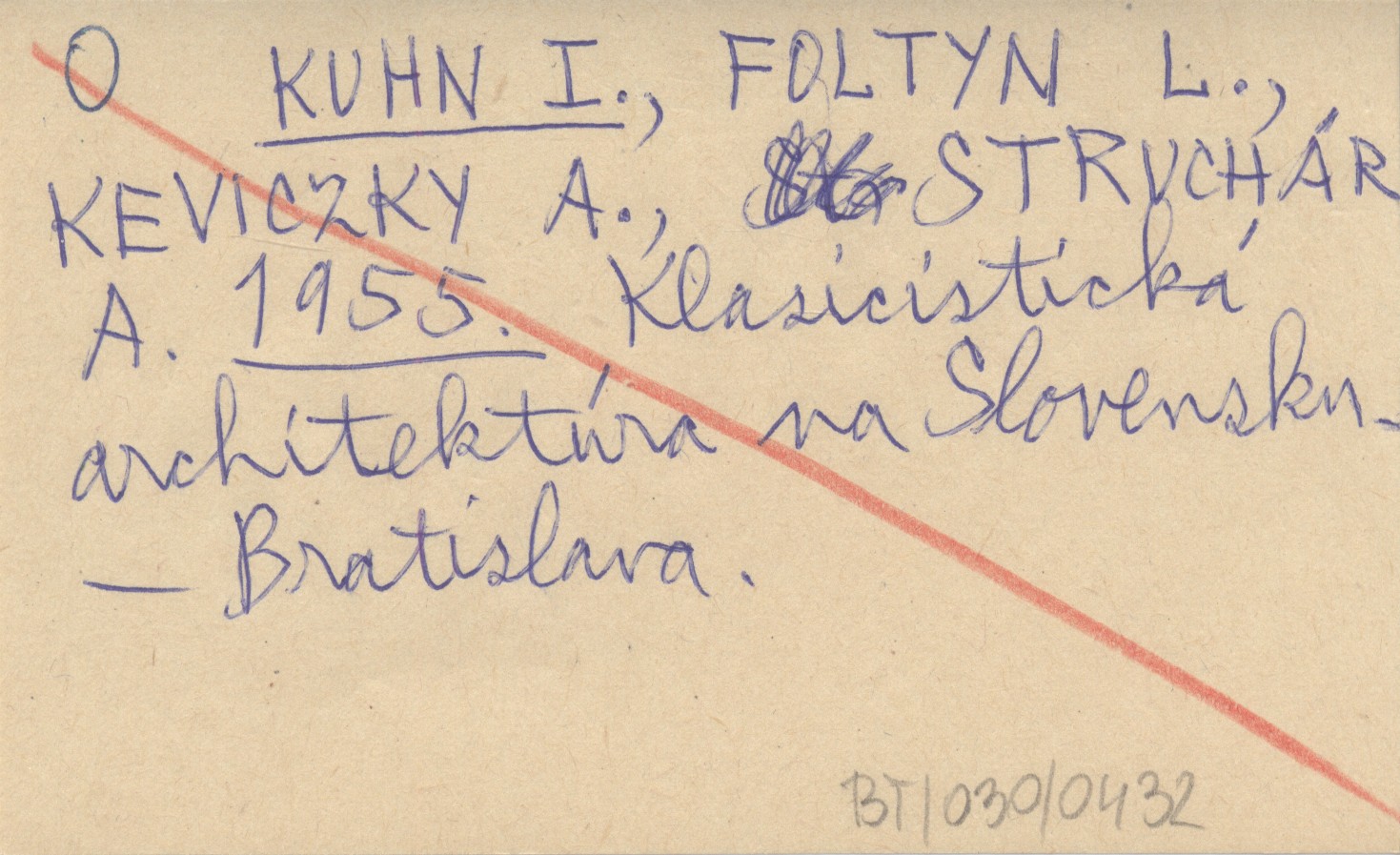 KUHN I. FOLTYN, L. ; KEVICZKY, A. ; STRUCHÁR, A. ; 1955 Klasicistická archítektúra na Slovensku.
