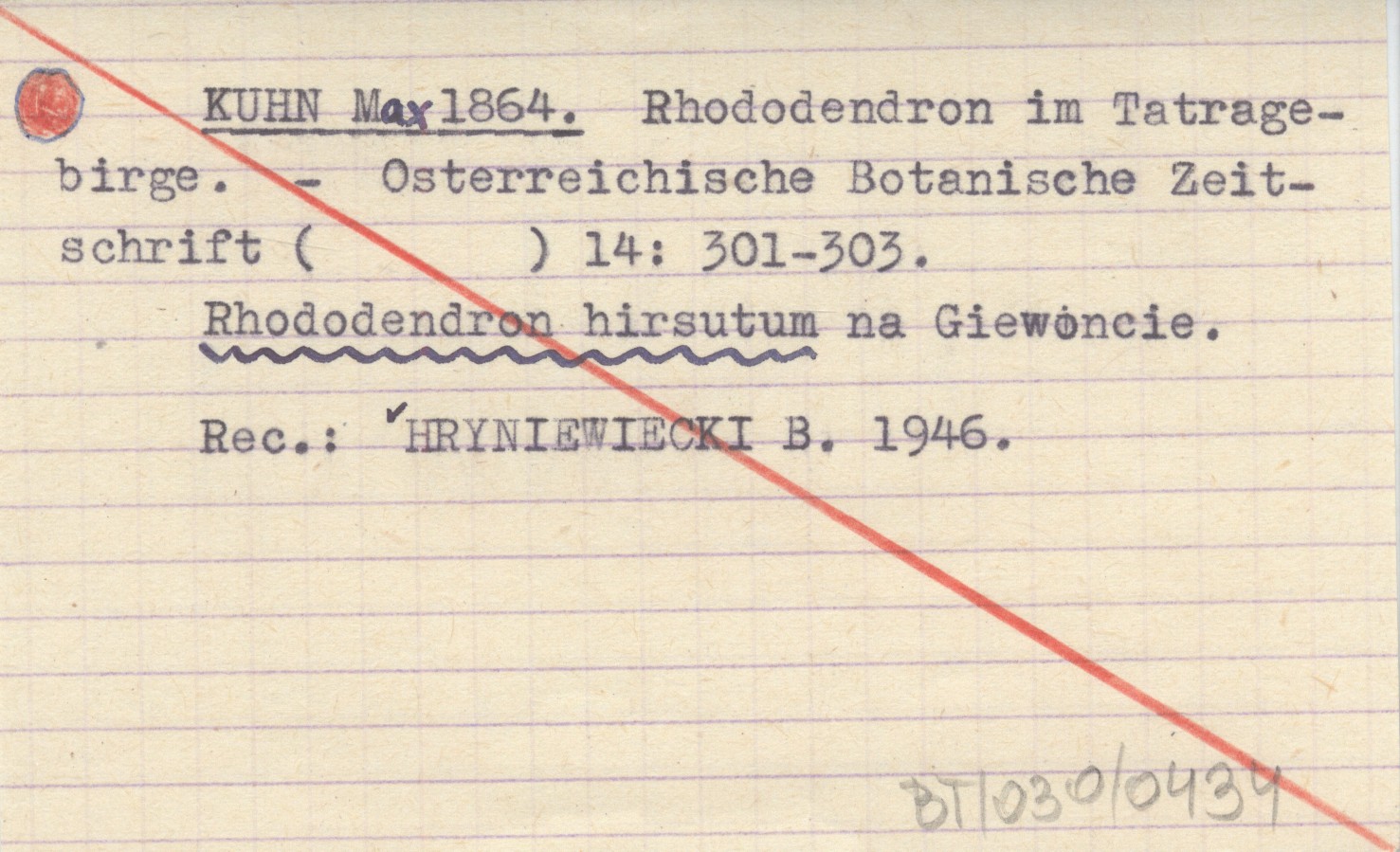 Österreichischen Botanischen Zeitschrift, 14: 301-303. Rhododendron hirsutum na Giewoncie. REC: HRYNIEWIECKI B. 1946