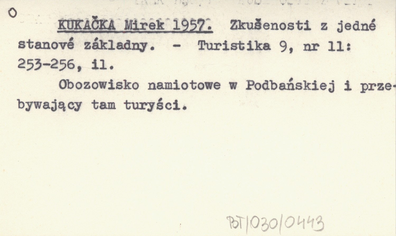 KUKAČKA Mirek 1957 Zkušenosti z jedné stanové základny.