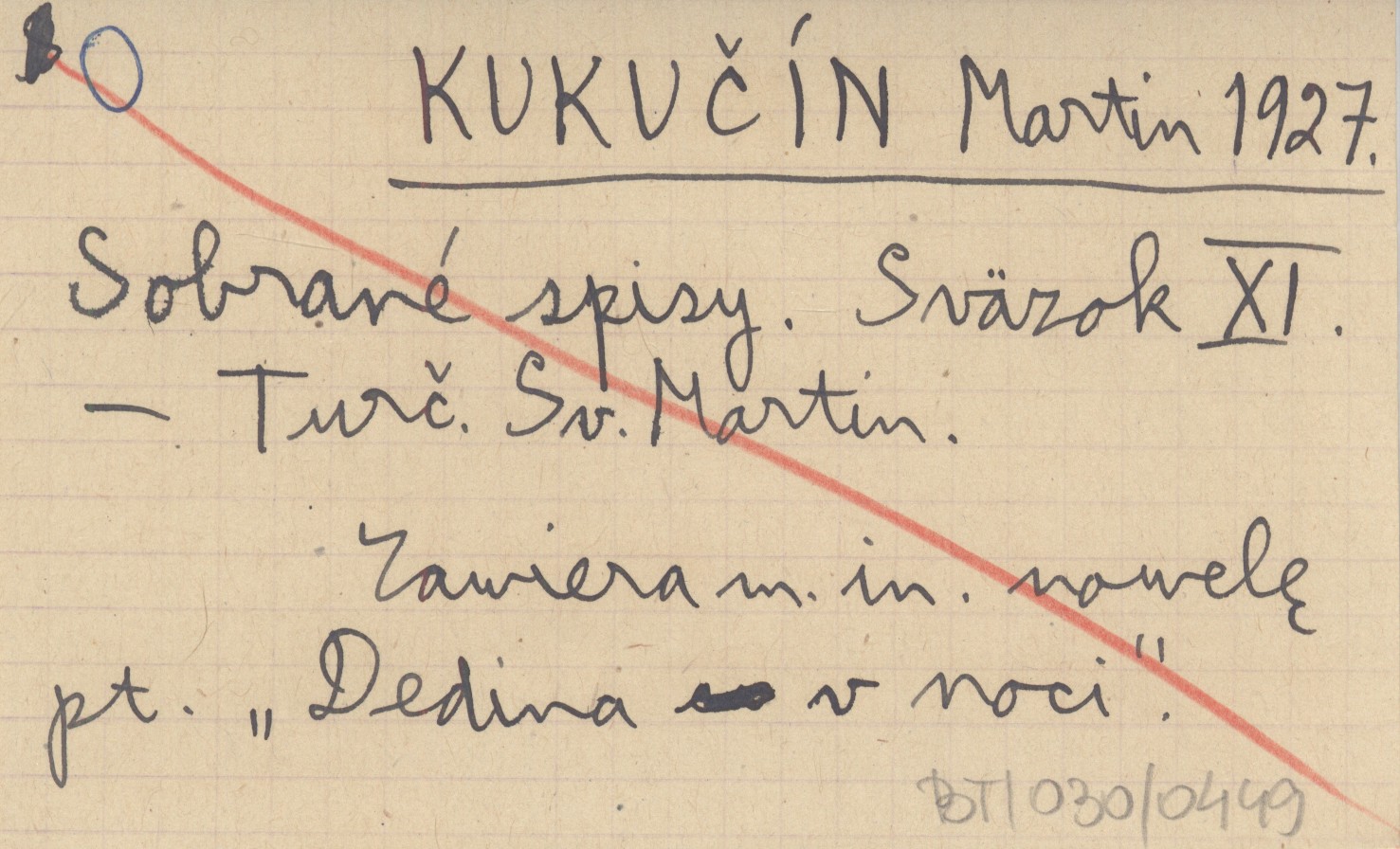 Turčiansky Svätý Martin , Zawiera m. in. nowelę pt. "Dedina v noci".