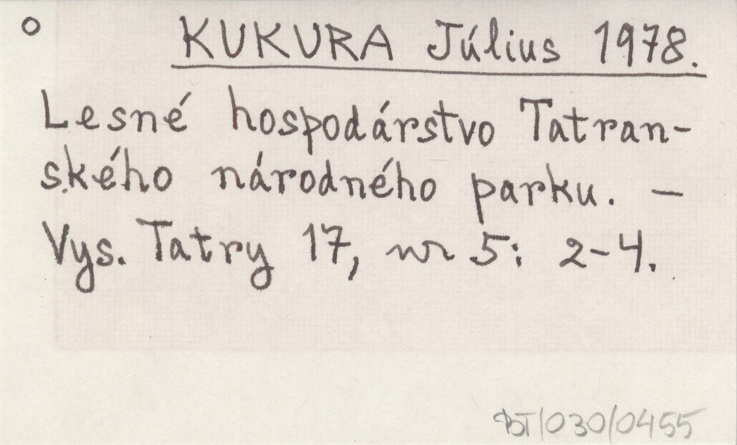 KUKURA Július 1978 Lesné hospodárstvo Tatranského národného parku.