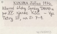 KUKURA Július 1976 Hlavné úlohy Správy TANAP-u po XV. zjazde KSČ.