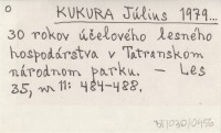 KUKURA Július 1979... 30 rokov účelového lesného hospodárstva v Tatranskom národnom parku.