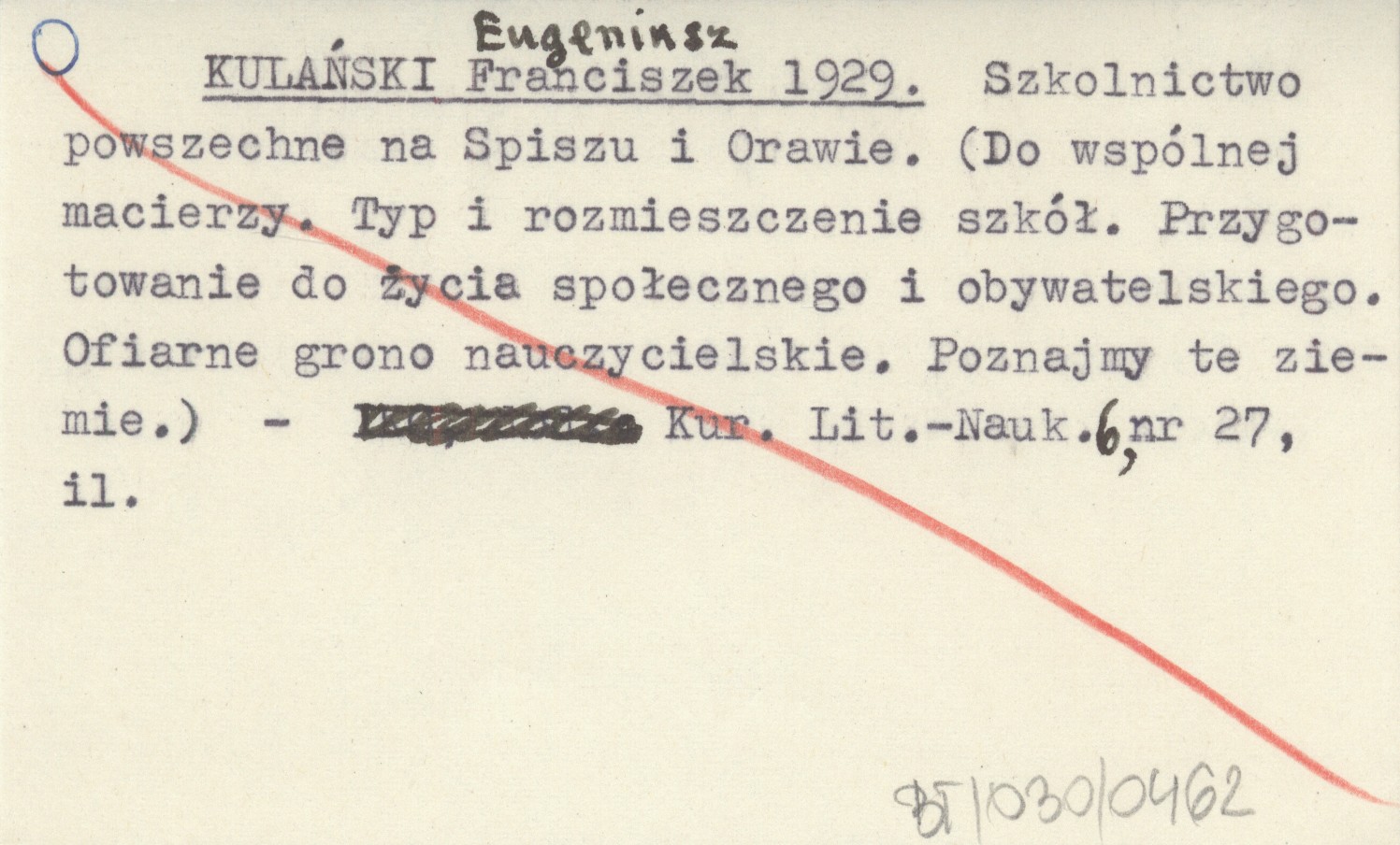 KULAŃSKI Franciszek Eugeniusz 1929 Szkolnictwo powszechne na Spiszu i Orawie. (Do wspólnej macierzy. Typ i rozmieszczenia szkół. Przygotowanie do życia społecznego i obywatelskiego. Ofiarne grono nauczycielskie. Poznajmy te ziemie).