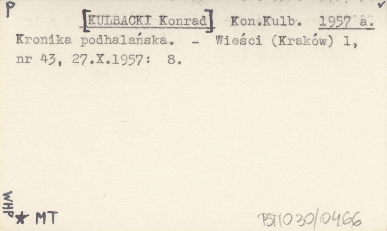 Kon. Kulb. [KULBACKI Konrad] 1957 a Kronika podhalańska.