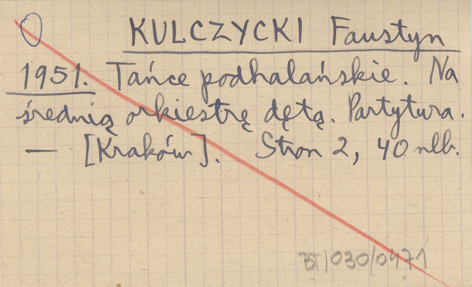 KULCZYCKI Faustyn 1951 Tańce podhalańskie. Na średnią orkiestrę dętą. Partytura.