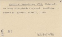 KULCZYCKI Włodzimierz 1885 Materyały do fauny skorupiaków krajowych. Asellidae.