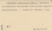 KULCZYCKI Włodzimierz 1885 a Materyały do monografii skorupiaków liścionogich. Rodzina Branchipodidae.
