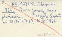 KULCZYCKI Zbigniew 1966 Dwie gazety zakopiańskie.