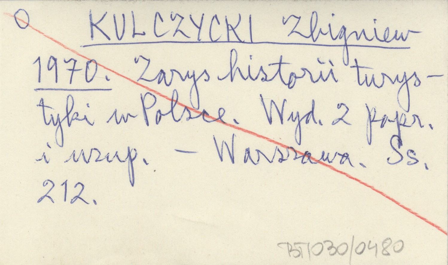 KULCZYCKI Zbigniew 1970 Zarys historii turystyki w Polsce.