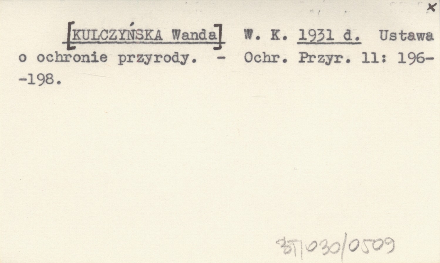 W. K. [KULCZYŃSKA Wanda] 1931 d Ustawa o ochronie przyrody.