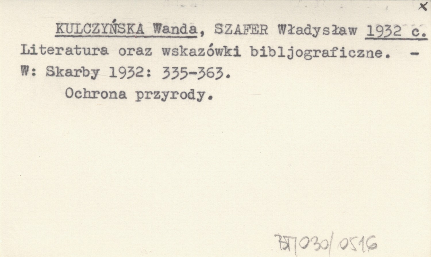 KULCZYŃSKA Wanda SZAFER, Władysław. ; 1932 c Literatura oraz wskazówki bibljograficzne.