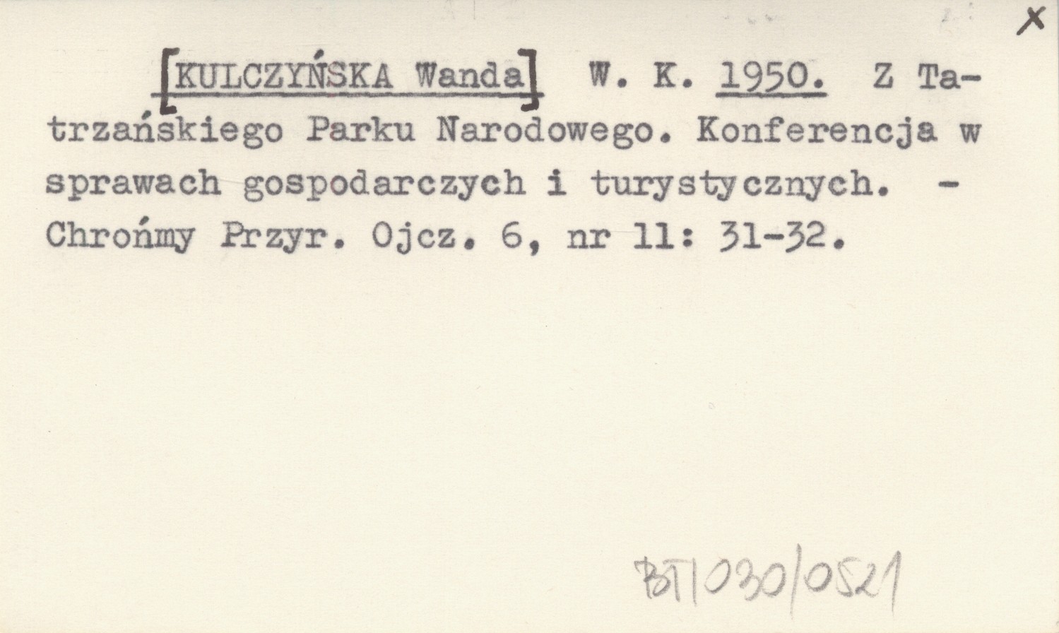 W. K. [KULCZYŃSKA Wanda] 1950 Z Tatrzańskiego Parku Narodowego. Konferencja w sprawach gospodarczych i turystycznych.