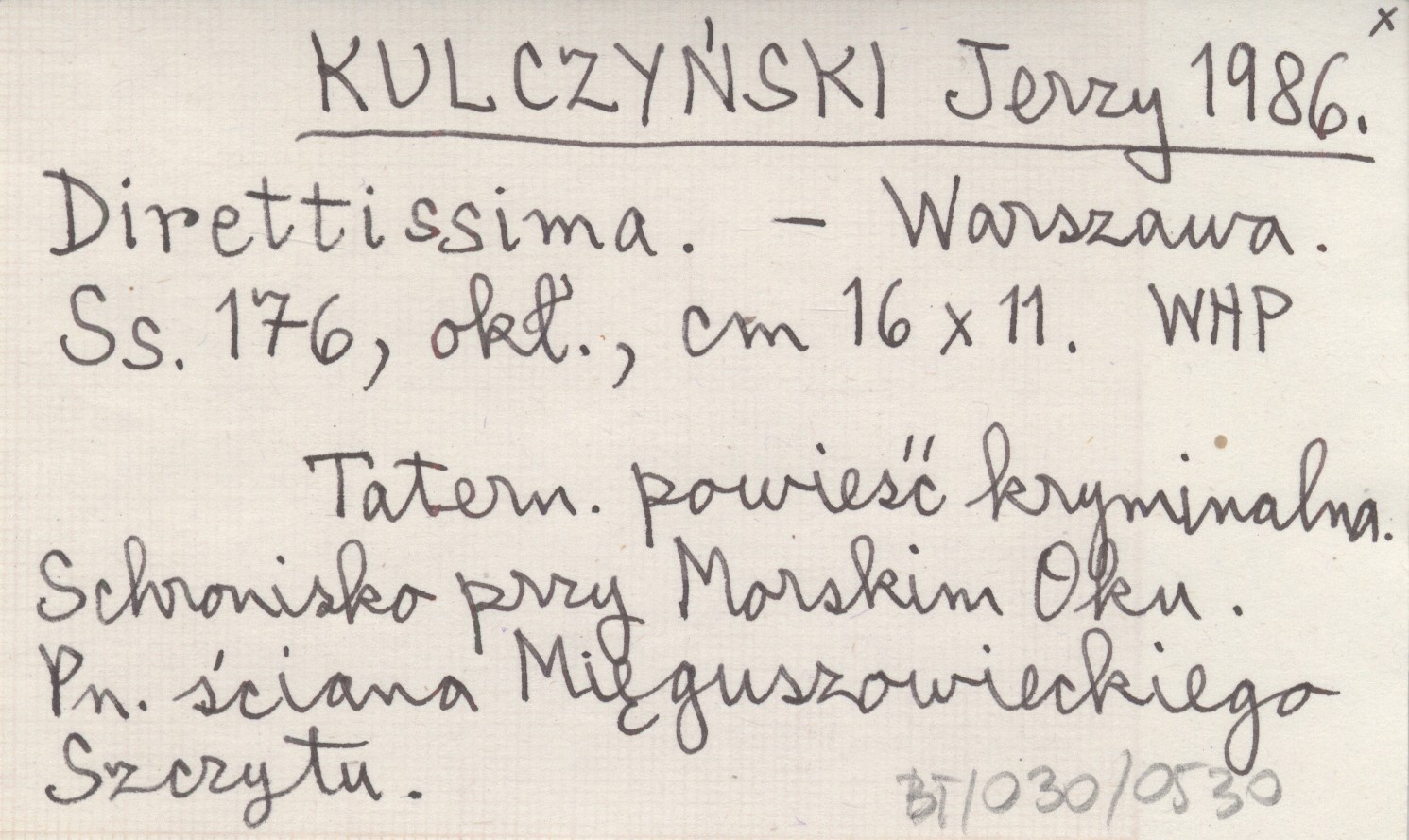 Warszawa , 176 s., okł., 16x11 cm. Taternicka powieść kryminalna. Schronisko przy Morskim Oku. Północna ściana Mięguszowieckiego Szczytu.