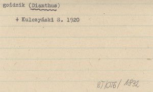 KULCZYŃSKI Stanisław 1920 Studja systematyczno-geograficzne nad gwoździkami.