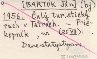 (bj) [BARTÓK Ján] 1956 Čulý turistický ruch v Tatrách.