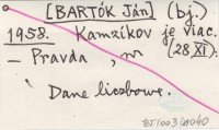 (bj.) [BARTÓK Ján] 1958 Kamzíkov je viac.