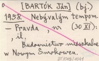 (bj.) [BARTÓK Ján] 1958 Nebývalým tempom.