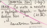 (-bj-) [BARTÓK Ján] 1958 Čo viete a neviete o Vyąných Hágoch.