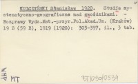 KULCZYŃSKI Stanisław 1920 Studja systematyczno-geograficzne nad gwoździkami.