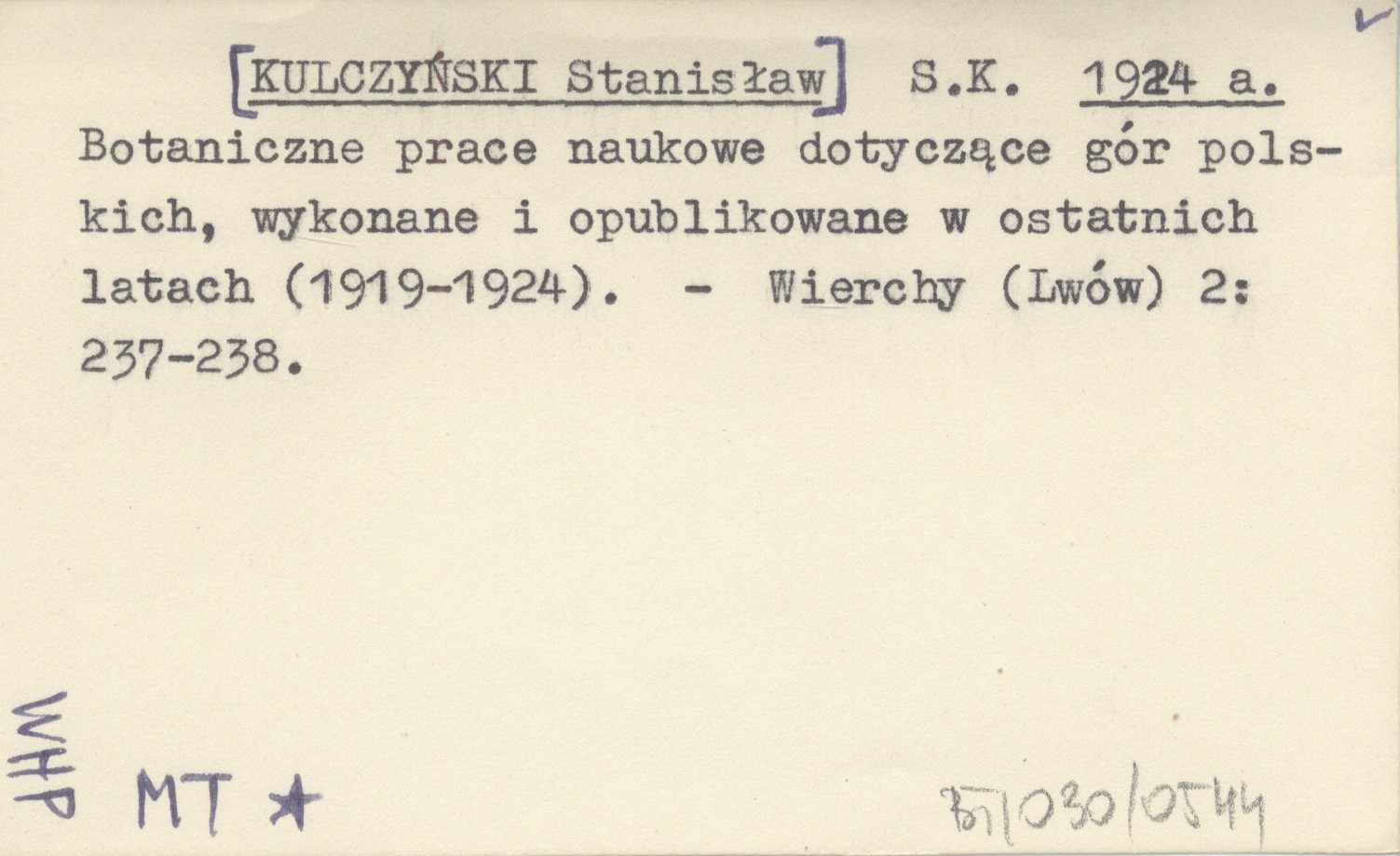 S. K. [KULCZYŃSKI Stanisław] 1924 a Botaniczne prace naukowe dotyczące gór polskich, wykonane i opublikowane w ostatnich latach (1919-1924).