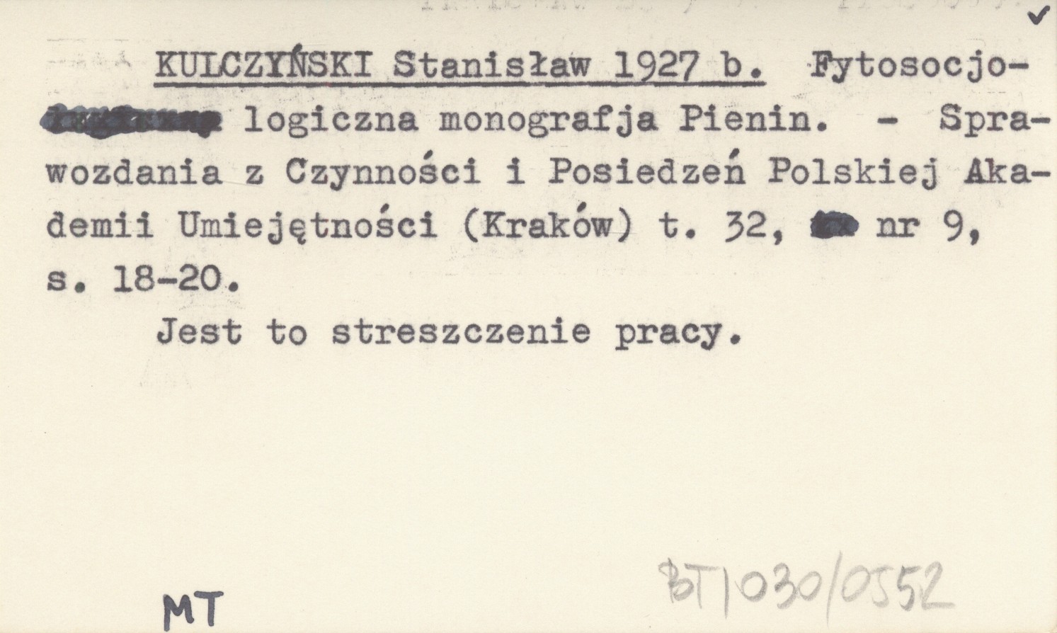 KULCZYŃSKI Stanisław 1927 b Fytosocjologiczna monografja Pienin.
