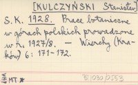 S. K. [KULCZYŃSKI Stanisław] 1928 Prace botaniczne w górach polskich prowadzone w r. 1927/8.