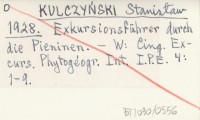 KULCZYŃSKI Stanisław 1928 Exkursionsführer durch die Pieninen.