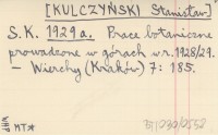 S. K. [KULCZYŃSKI Stanisław] 1929 a Prace botaniczne prowadzone w górach w r. 1928/29.