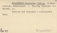 KULCZYŃSKI Stanisław 1933 a O Czarnohorze. Roślinność.