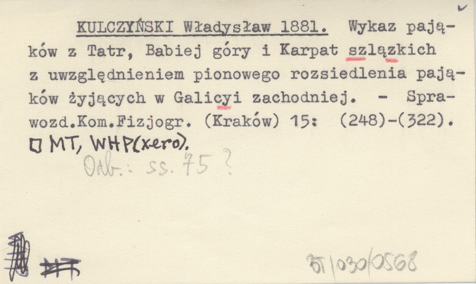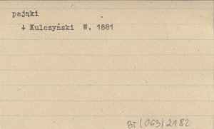 KULCZYŃSKI Władysław 1881 Wykaz pajęczaków z Tatr, Babiej góry i Karpat szlązkich z uwzględnieniem pionowego rozsiedlenia pajęczaków żyjących w Galicyi zachodniej.