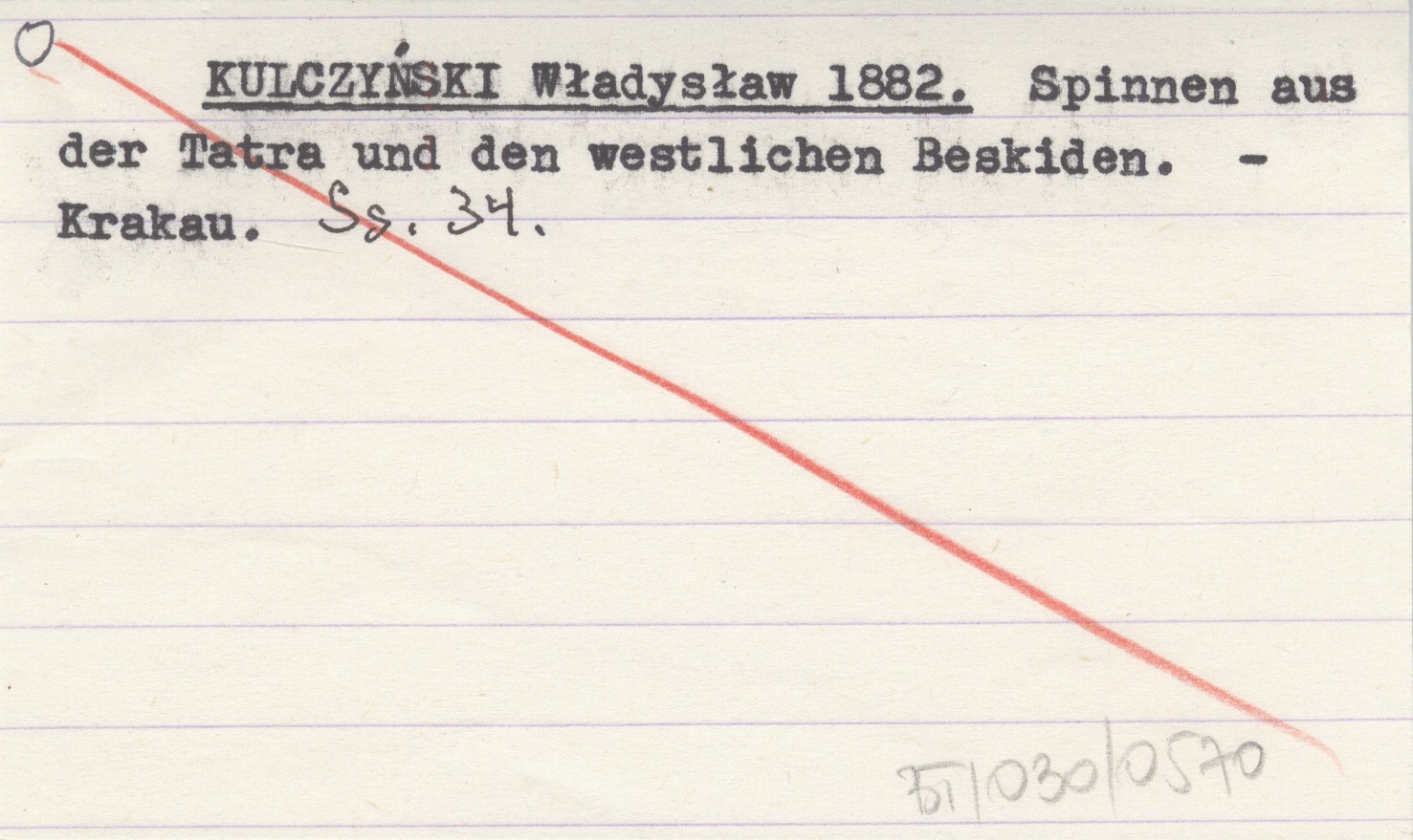KULCZYŃSKI Władysław 1882 Spinnen aus der Tatra und den westlichen Beskiden.