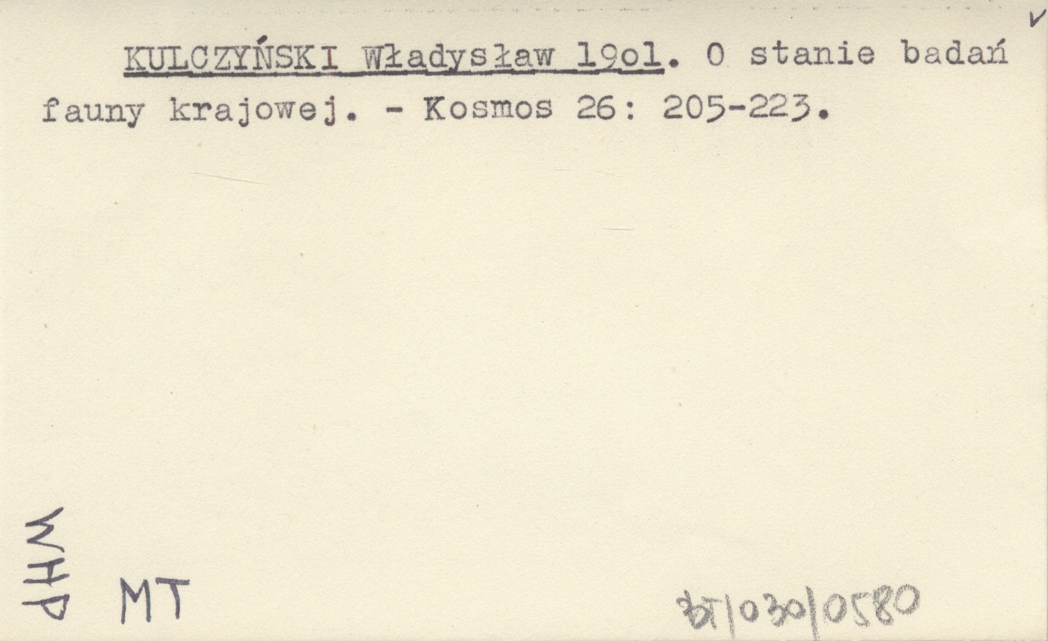 KULCZYŃSKI Władysław 1901 O stanie badań fauny krajowej.