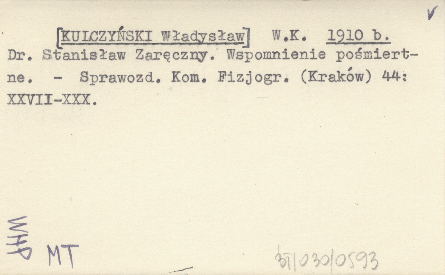 W. K. [KULCZYŃSKI Władysław] 1910 b Dr. Stanisław Zaręczny. Wspomnienie pośmiertne.