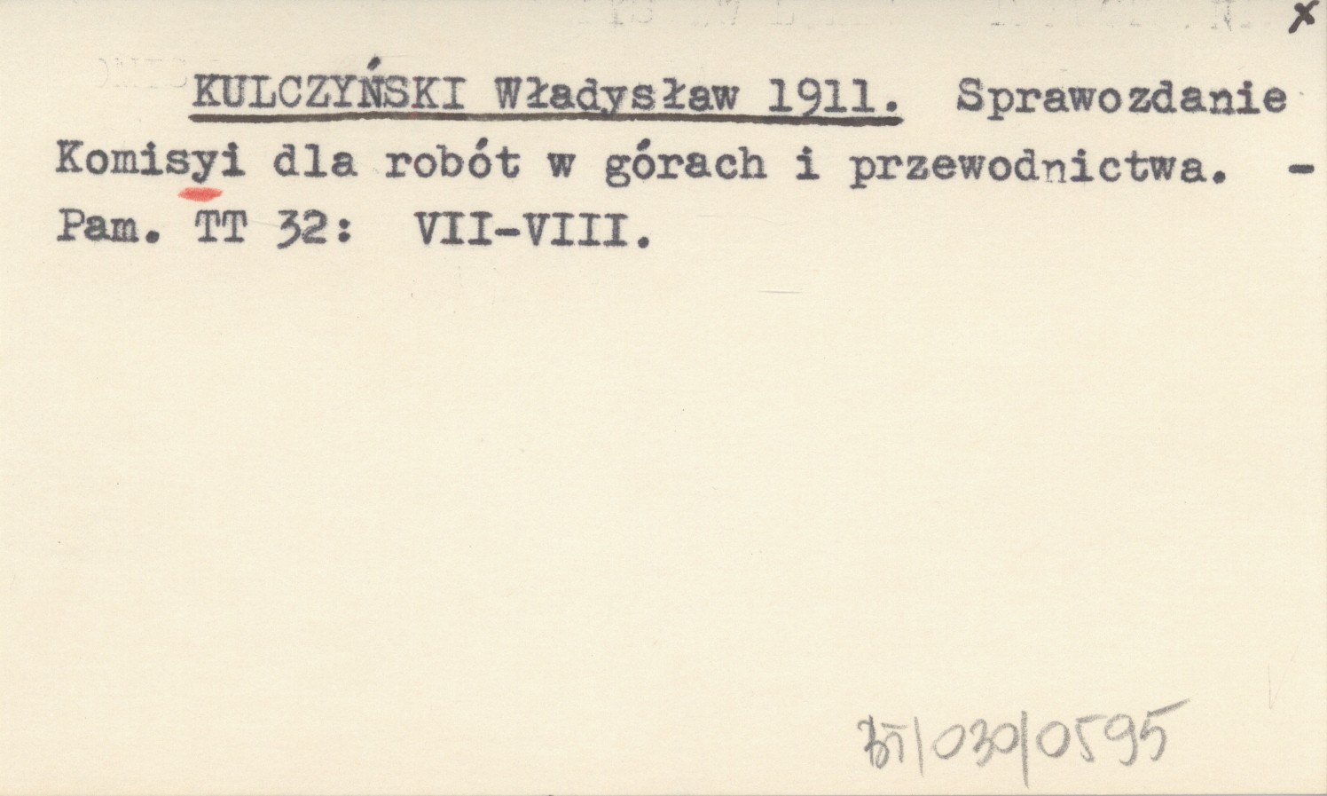 KULCZYŃSKI Władysław 1911 Sprawozdanie Komisyi dla robót w górach i przewodnictwa.