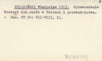 KULCZYŃSKI Władysław 1913 Sprawozdanie Komisyi dla robót w Tatrach i przewodnictwa.