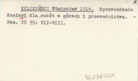 KULCZYŃSKI Władysław 1914 Sprawozdanie Komisyi dla robót w górach i przewodnictwa.