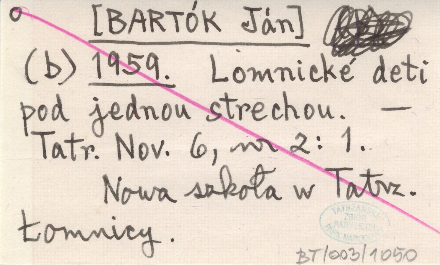 (b) [BARTÓK Ján] 1959 Lomnické deti pod jednou strechou.
