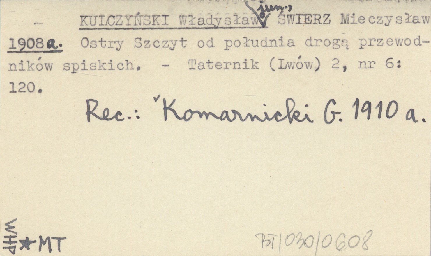 Taternik (Lwów) , 2, nr 6: 120. REC: KOMARNICKI G. 1910 a