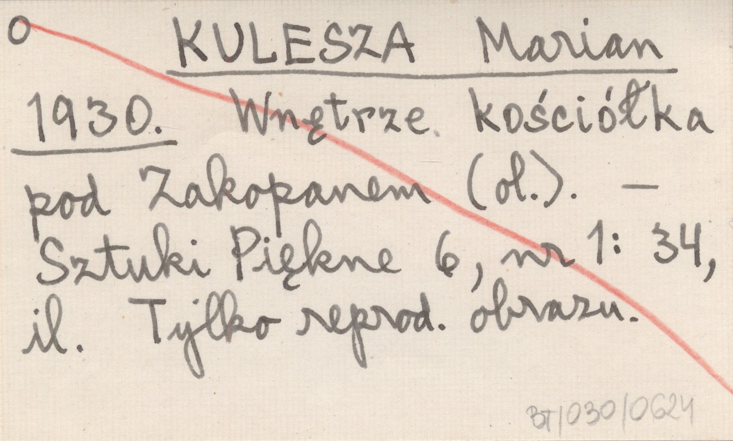 KULESZA Marian 1930 Wnętrze kościółka pod Zakopanem (ol.).