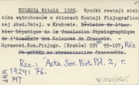 KULESZA Witold 1920 Wyniki rewizji zielnika wątrobowców w zbiorach Komisji Fizjograficznej Akad. Umiej. w Krakowie.