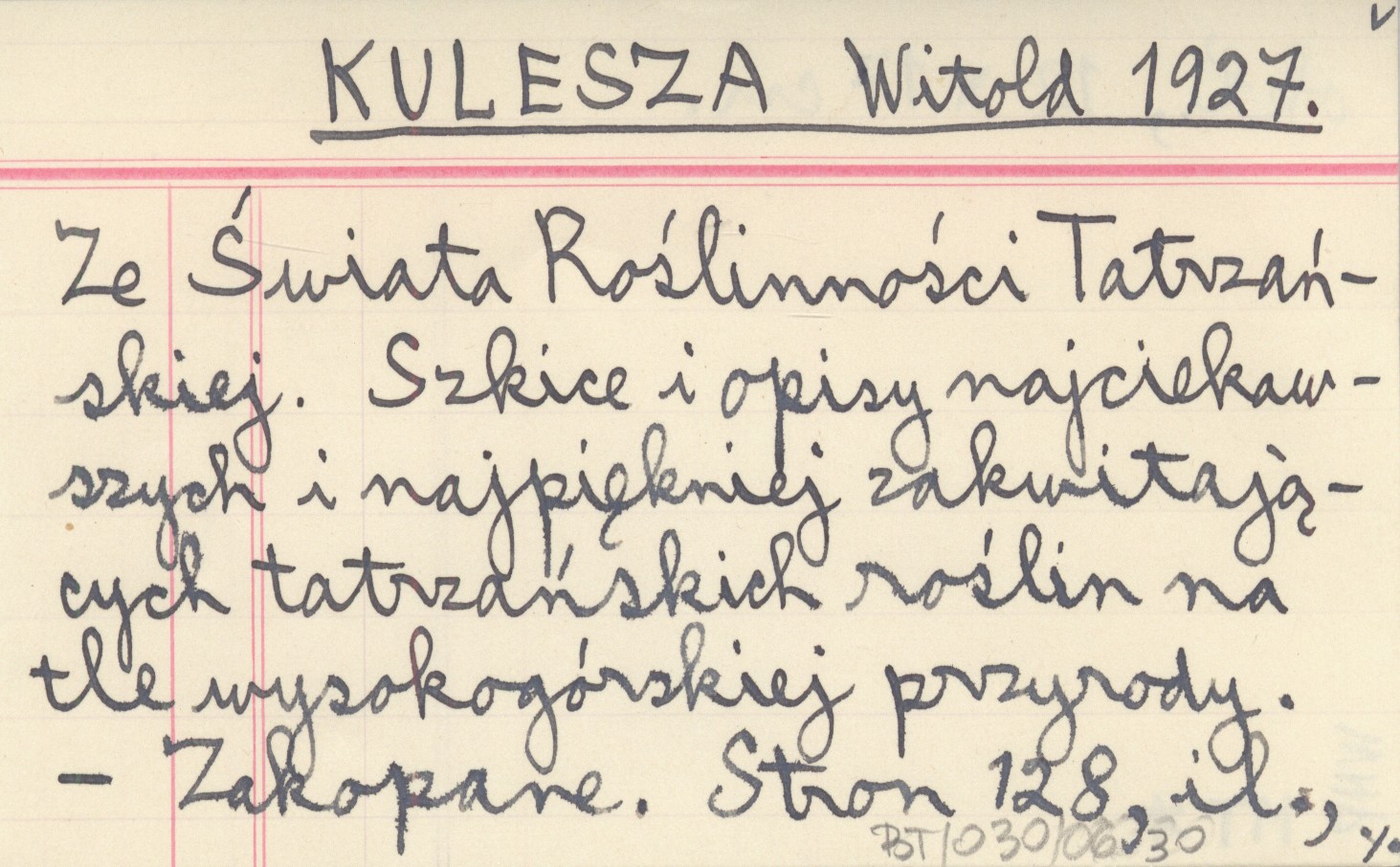 KULESZA Witold 1927 Ze Świata Roślinności Tatrzańskiej. Szkice i opisy najciekawszych i najpiękniej zakwitających tatrzańskich roślin na tle wysokogórskiej przyrody.