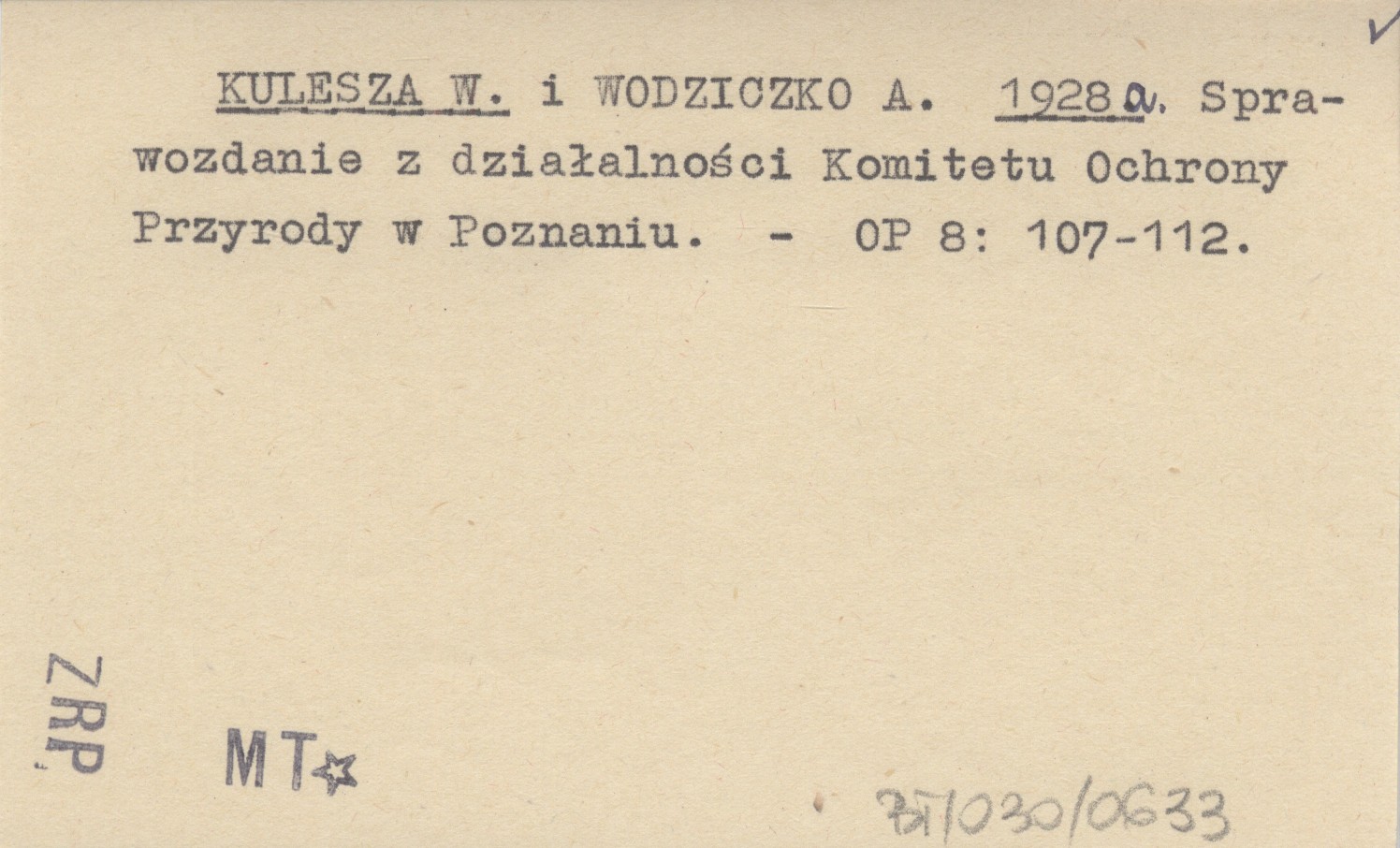 KULESZA Witold WODZICZKO, A. ; 1928 a Sprawozdanie z działalności Komitetu Ochrony Przyrody w Poznaniu.
