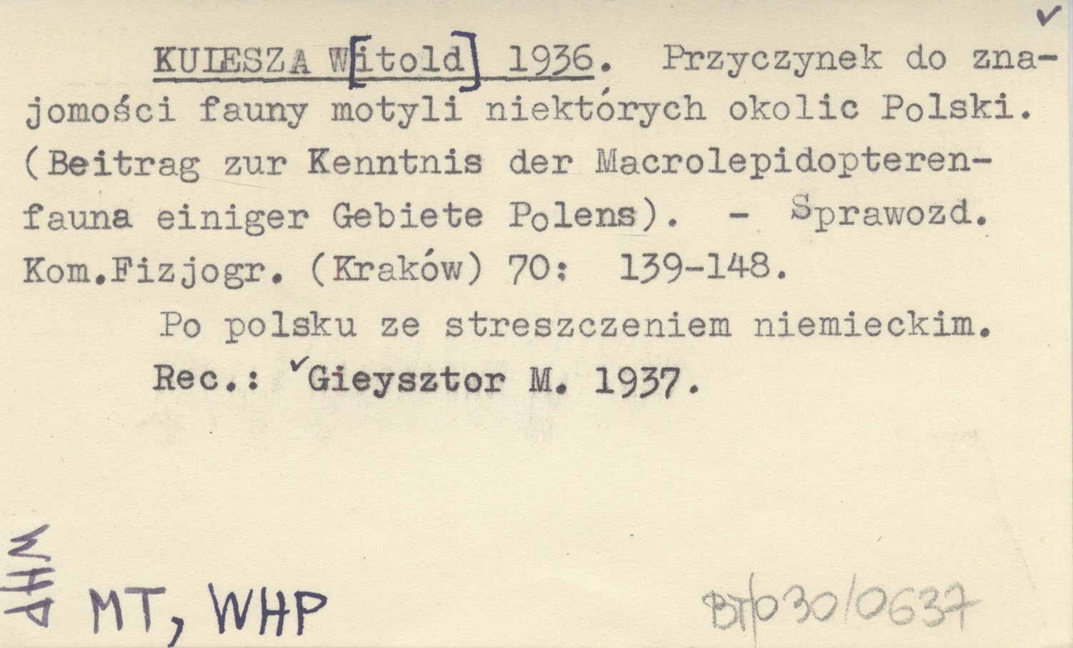 KULESZA W[itold] 1936 Przyczynek do znajomości fauny motyli niektórych okolic Polski. (Beitrag zur Kenntnis der Macrolepidopteren-fauna einiger Gebiete Polens).