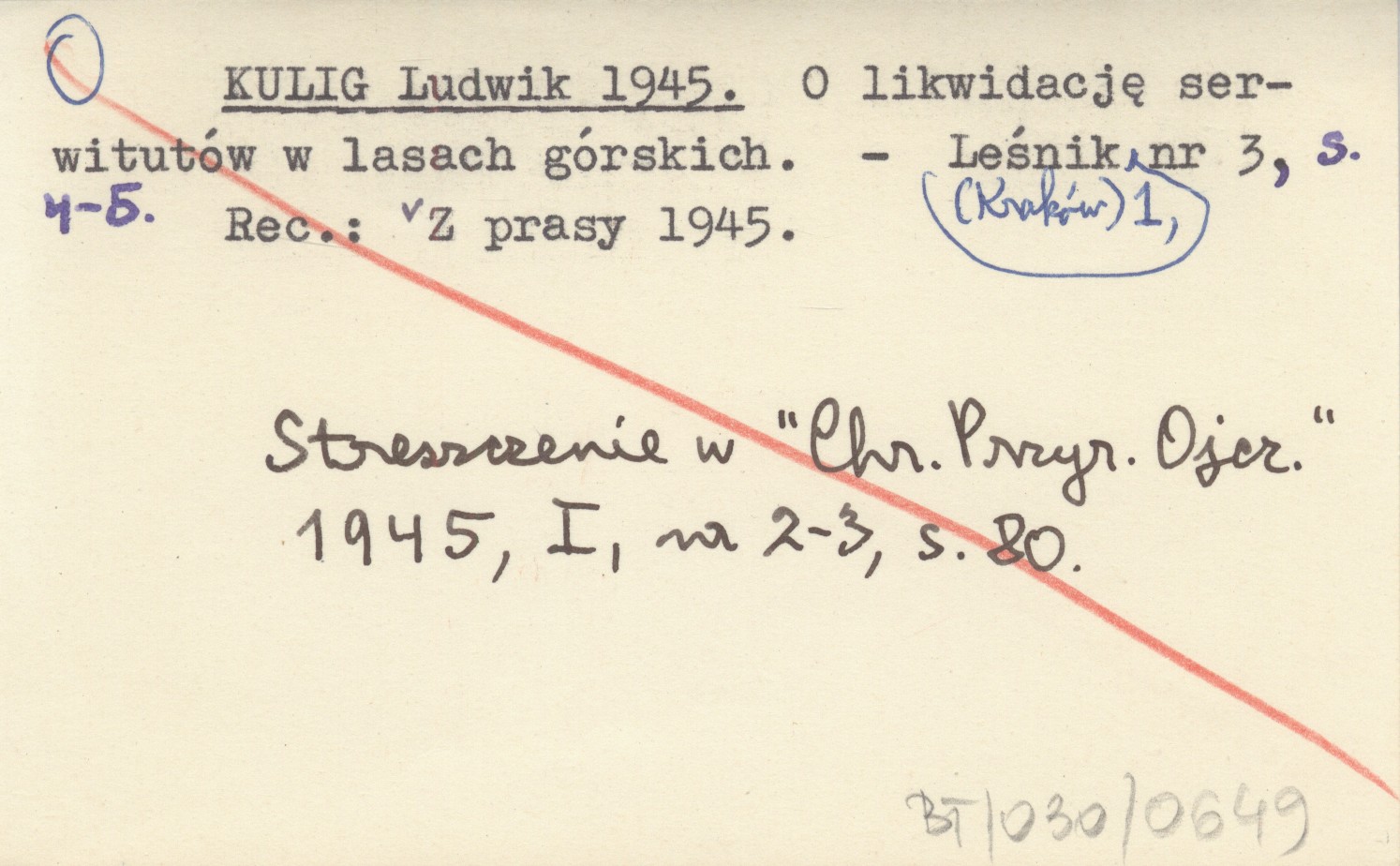Leśnik (Kraków) , 1, nr 3: 4-5. Streszczenie w Chrońmy Przyrodę Ojczystą 1945, I, nr 2-3: 80. REC: Z prasy 1945