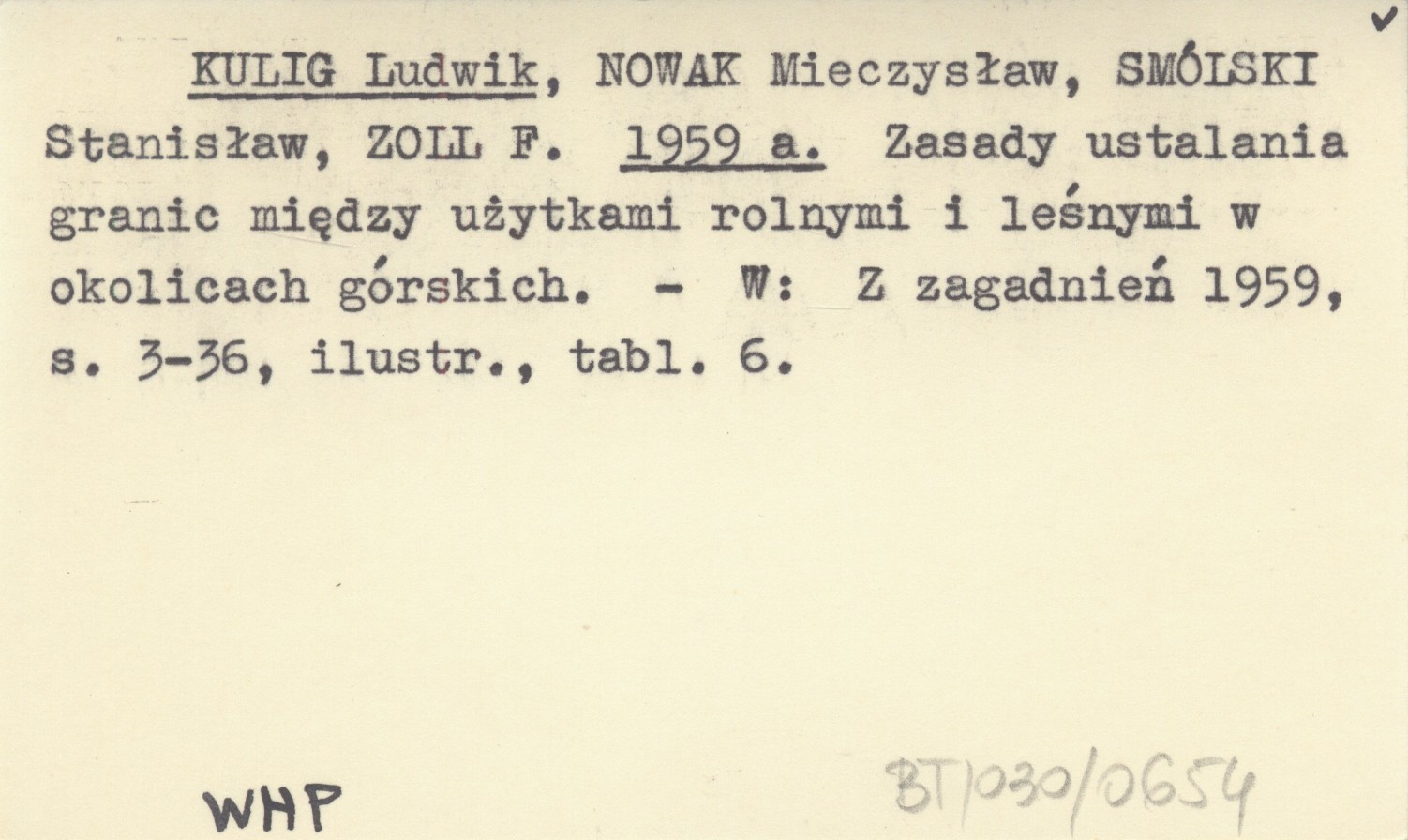 KULIG Ludwik NOWAK, Mieczysław. ; SMÓLSKI, Stanisław. ; ZOLL, F. ; 1959 a Zasady ustalania granic między użytkami rolnymi i leśnymi w okolicach górskich.